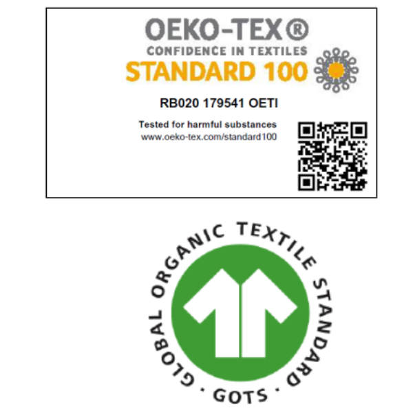 La manufacture s'engage dans une démarche responsable, certifiée par trois référentiels internationaux : OEKO-TEX pour des tissus sans produits toxiques, GOTS pour le recours à des matières biologiques, et SMETA pour des conditions de travail éthiques. Ces labels sont la preuve tangible de notre transparence et de notre quête d'excellence durable.